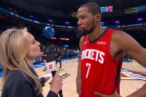 体育资讯2月8日讯 NBA常规赛,火箭在客场以112-106击败雷霆。赛后杜兰特接受了采访。
