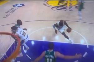 GIF-布朗击打里夫斯裆部,詹姆斯上篮丢了,没有吹罚