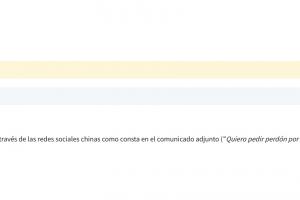 En relación a su correo electrónico, indicarle que el jugador se ha disculpado a través de las redes sociales chinas como consta en el comunicado adjunto (“Quiero pedir perdón por haber compartido por accidente un post ofensivo hacia la comunidad china. Fue un error involuntario y sin ninguna mala intención.”).