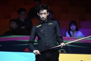 上半场,吴宜泽打出两杆破百(140、109)和两杆50+(83、77)连胜四局拿到赛点,马克·艾伦四局比赛仅得3分。