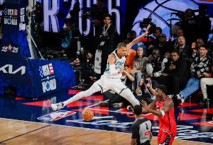 体育资讯2月16日讯 NBA全明星正赛决赛,美国新星队47-21击败美国星条队,夺得冠军。